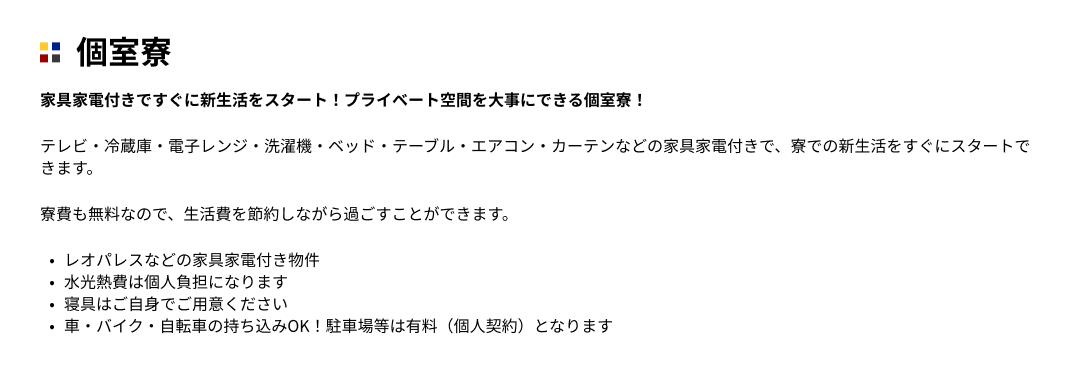 寮・福利厚生